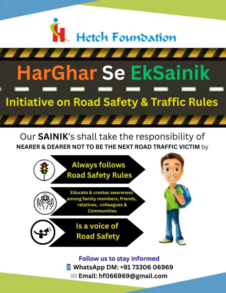 To promote responsible road behaviour, Hetch Foundation has initiated “HarGhar Se EkSainik” campaign. This “Sainik” from every household of the nation shall always follows road safety rules and actively promotes awareness among their family members, friends, colleges, community about importance of following road safety rules thus protecting their Nearer & Dearer Not To Be The Next Road Traffic Victims.